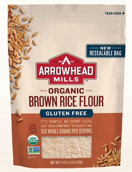 Arrowhead Mills Brown Rice Flour will add a nutty taste to you favorite home-baked recipes. Made with the whole rice kernel, it is higher in fiber, vitamins and minerals than white rice, and it is gluten free. It makes an excellent flour for sauces, shortbread and for coating foods.
