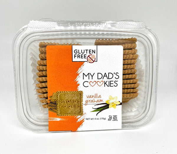 Introducing the new and improved vanilla graham! A square crisp cookie that pairs perfectly with a cup of coffee or tea. A wonderful snack made from soy flour that is egg, dairy and nut free. Check out our chocolate version for a crispy chocolate flavored treat.