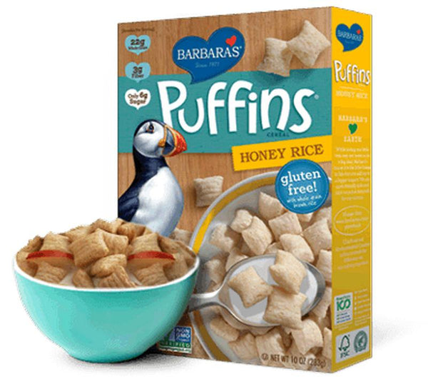 Puffins Honey Rice CerealPuffins Honey Rice CerealWhole grain brown rice pillows are gluten free and have a great crunch with honey-sweetened goodness