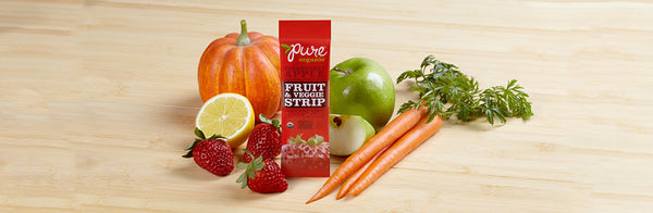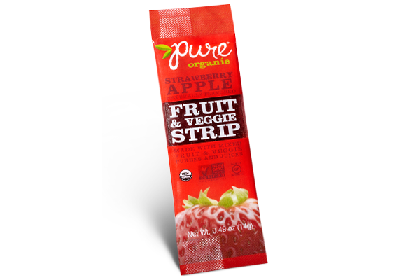 Pure Fruit and Veggie strips are chewy and sweet treats that are certified organic, non GMO, vegan, gluten-free, soy free, kosher and made with real fruit and vegetable purees and juices.