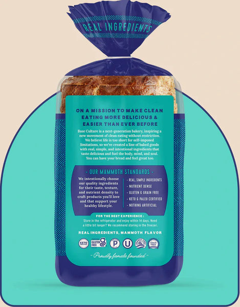 Water, Eggs, Almond Butter, Arrowroot Flour, Golden Flaxseed Meal, Psyllium Husks, Apple Cider Vinegar, Flaxseed, Sunflower Seeds, Pecans, Pumpkin seeds, Sea Salt, Chia Seeds, Hemp Seeds, Baking Soda.