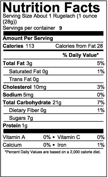 One of our top sellers, these soft and delicious non-crumbly rugelach are filled with layers of sweet fresh cinnamon. Perfect for snacks, Sabbath afternoons, and parties.