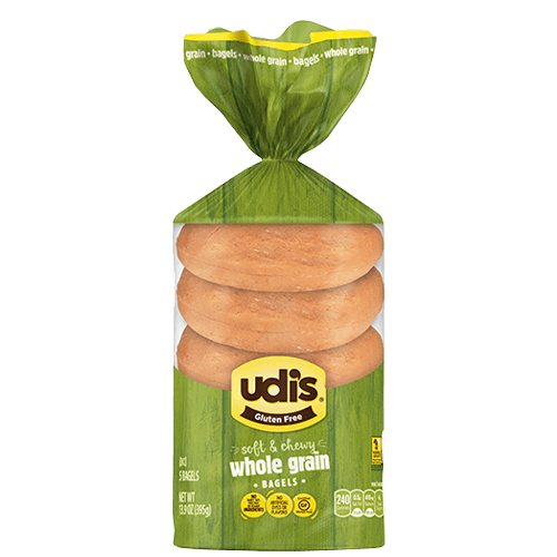 Introducing Udi’s Gluten Free Bagels, the newest addition to our collection of baked goods. Already a popular item throughout the Rocky Mountain region, our soft, chewy, and yummy plain bagels are anything but plain. They’re delicious anytime of day and now available for everyone to enjoy. Top with your favorite cream cheese and lox, prepare your favorite sandwich or even make pizza bagels. Nosh to your heart’s content. Udi’s bagels are great. Udi's, known for it's gluten free breads, muffins and granolas, has launched a new product this year; a whole grain bagel. Prior to this, Udi's only produced a white bagel. Although it is a good alternative to most of the gf bagel offerings since it's actually soft, it is very "starchy". The whole grain variety is closer to a real bagel. If you like their while grain bread, you will probably like this product.
