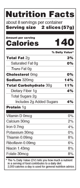 Gluten-free flour blend (modified tapioca starch, potato starch*, rice flour, rice starch), Water, Sugars (cane sugar, dextrose*), Canola oil*, Modified cellulose, Psyllium, Salt, Yeast, Vinegar, Milled flaxseed, Cultured corn syrup solids*, Citric acid, Vitamin and mineral blend (niacin, iron, thiamine, riboflavin, folic acid).