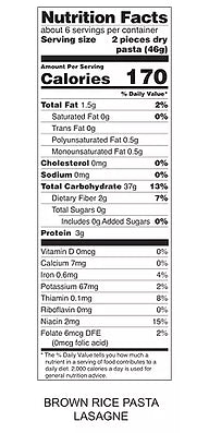 8 pieces of lasagne, 9x13"/23x33 cm ~3 Qt./2.85 L baking dish 23 oz./680 ml tomato sauce (add 7-10 oz./200-300 ml water to thin the sauce) Pre-heat oven to 375° F. Apply olive oil to bottom of container and a layer of sauce. Place 4 lasagne pieces into the container, add vegetables and/or meat, ricotta cheese, cover the layer with sauce completely. Place another 4 pieces of lasagne, add ingredients, cover the lasagne surface with sauce completely and lavishly. Top with shredded mozzarella cheese. Cover container with foil and bake for 45 minutes, then broil uncovered for 2-5 minutes for a golden cheese crust (Guidelines only)