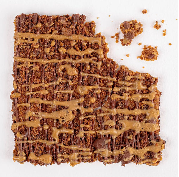 A vanilla cookie base topped with a chocolatey drizzle, sunflower seed butter & sea salt