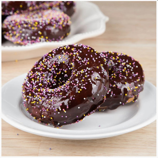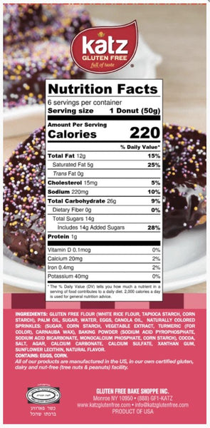 GLUTEN FREE FLOUR (WHITE RICE FLOUR, TAPIOCA STARCH, CORN STARCH), PALM OIL, SUGAR, WATER, EGGS, CANOLA OIL, NATURALLY COLORED SPRINKLES: (SUGAR, CORN STARCH, VEGETABLE EXTRACT, TURMERIC (FOR COLOR), CARNAUBA WAX), BAKING POWDER (SODIUM ACID PYROPHOSPHATE, SODIUM ACID BICARBONATE, MONOCALCIUM PHOSPHATE, CORN STARCH), COCOA, SALT, AGAR, CALCIUM CARBONATE, CALCIUM SULFATE, XANTHAN GUM, SUNFLOWER LECITHIN, NATURAL FLAVOR.