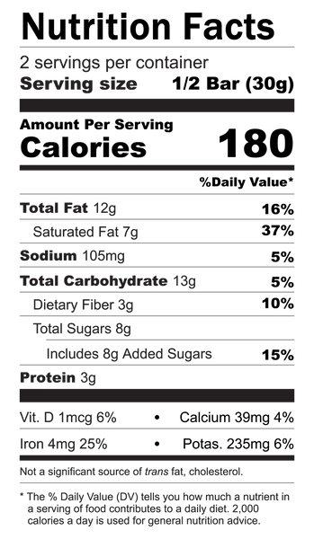 Allergy Statement: Contains coconut and almond. May contain traces of cashew & hazelnut . Allergen cleans made prior to production, but beware that product is produced using equipment that also processes tree nuts, soy, peanuts, milk, & wheat.