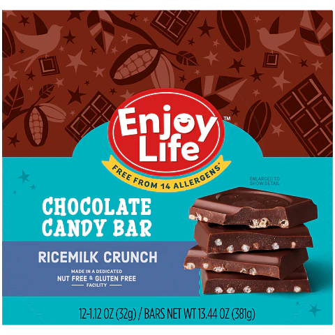 Packed with gluten-free crispy rice, this chocolate bar has the perfect bite of crunchy, creamy, melt-in-your-mouth goodness. Made with rice milk, it’s not only dairy-free, but nut-free and soy-free, too!