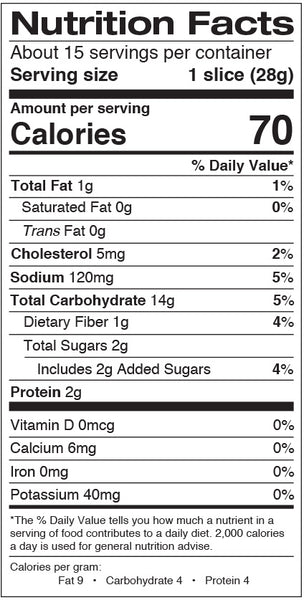 INGREDIENTS: Water, Brown Rice Flour, Tapioca Flour, Whole Grain Sorghum Flour, Organic Cane Sugar, Potato Flour, Non-GMO Expeller Pressed Canola Oil, Xanthan Gum, Egg Whites, Eggs, Yeast, Cultured Brown Rice Flour, Sea Salt, Vinegar (Organic Cane Sugar Vinegar), Sunflower Lecithin, Enzymes.