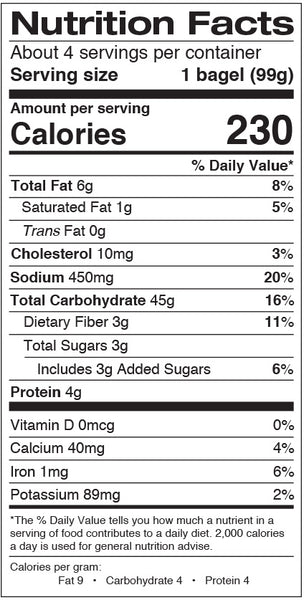 Packaging: 1 Bag 4 Pre-Sliced Bagels