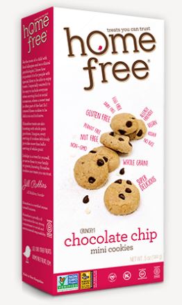 INGREDIENTS: Gluten free whole oat flour, evaporated cane juice, high oleic safflower oil, natural chocolate chips (sugar, chocolate liquor, non-dairy cocoa butter, anhydrous dextrose, soy lecithin [an emulsifier], vanilla flavor), organic tapioca starch, pear juice concentrate, baking soda (sodium bicarbonate), pure vanilla extract,salt, baking powder, soy lecithin, xanthan gum, cream of tartar, rosemary extract.