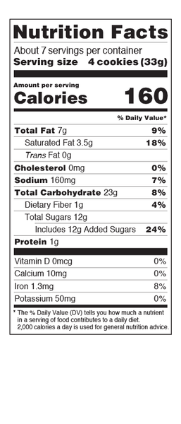 Chocolate chips (sugar*, cocoa mass, cocoa butter, sunflower lecithin, natural flavor), pea starch, shortening (palm oil, modified palm oil), brown sugar*, rice flour, water, cane sugar, potato starch*, pea protein, dextrose*, natural flavor, salt, canola oil*, baking powder, modified cellulose, sunflower lecithin, pea fiber.