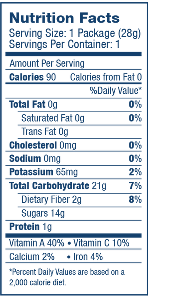 INGREDIENTS: Organic Mango Puree Concentrate, Organic Apricot Puree Concentrate (Organic Apricots, Ascorbic Acid [Vitamin C]). That's All!