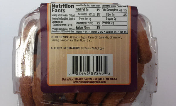 Ingredients: almonds, EGGS, palm oil, splenda, cinnamon, baking powder, xanthan gum,salt.
