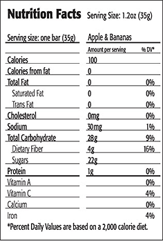An Apple A Day Keeps The Dr. Away Blend It With The Healthy Benefits Of Bananas, This Delicious Bar Is just That Right Blend, Nothing But An Apple And A Banana With Only 100 Calories And 3 Grams Fiber You Are Sure Loading Your Body With The Best Of It All.