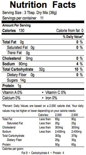 Ingredients: White rice flour, sugar, potato starch, sodium bicarbonate, xanthan gum, salt, sodium acid pyrophosphate, monocalcium phosphate.