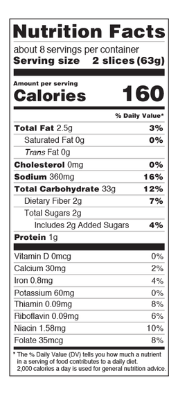Gluten-free flour blend (modified tapioca starch, potato starch*, white rice flour, brown rice flour, rice starch, teff flour), water, canola oil*, cane sugar, dextrose*, modified cellulose, psyllium, salt, yeast, molasses*, milled flaxseed, cultured corn syrup solids*, citric acid, vitamin and mineral blend (niacin, iron, thiamin, riboflavin, folic acid).