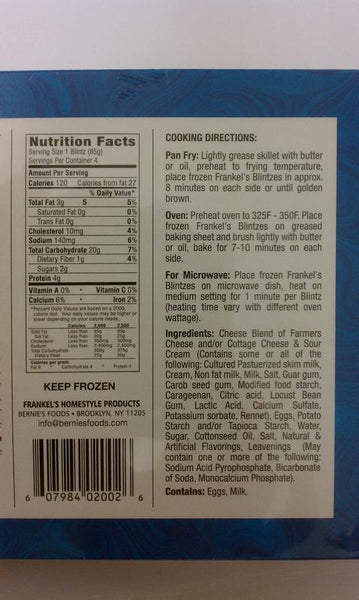 Packaging: 1 Box { 4 Blintzes }