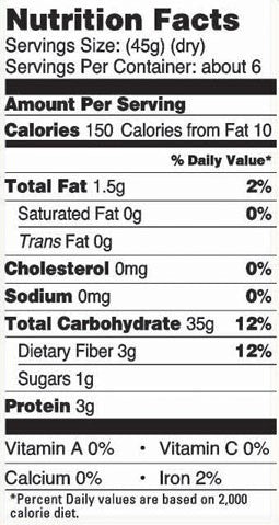 | Roasted Brown Rice Couscous | 1/4 cup | 1/2 cup | 1 box |