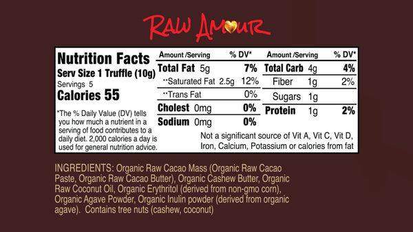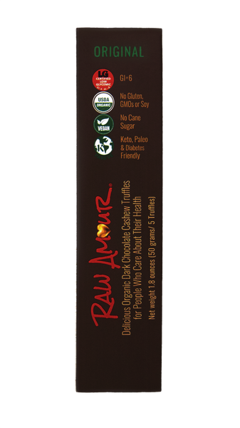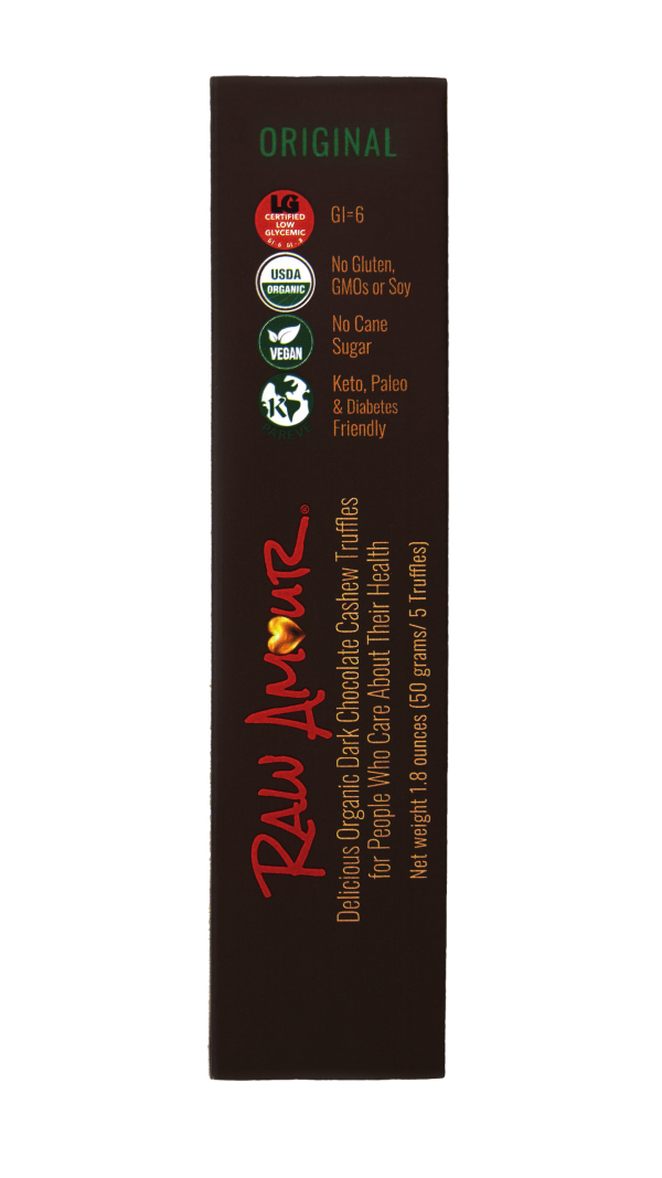 These Bars Were Created for dark chocolate lovers who deserve a treat that is not only healthy but tastes delicious. Conceived by a Holistic Doctor with over 45 years of experience in nutrition, Raw Amour dark chocolate truffles are formulated with the finest ingredients and a philosophy based on what is really beneficial to a person’s health and well-being rather than on what is currently in vogue in the marketplace. With a certified glycemic index of 6, Raw Amour offers an organic dark chocolate without the stomach upset or bloating caused by chocolates formulated for individuals who are diabetic or prediabetic . Perfect for those who follow an organic, vegan, paleo, keto, or sugar free life-style.