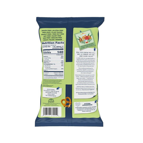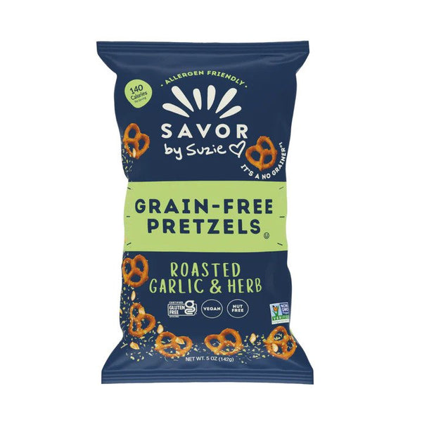 Our classic twists have grown up and gone gourmet. If your favorite holiday stuffing and go-to garlic bread had a pretzel baby...it’d be our Roasted Garlic & Herb Twists. Rich, roasty garlic is glazed over each twist and a dash of Suzie’s favorite herb blend completes the flavor explosion. You’ll find yourself craving the savory, sophisticated flavor of these mouth-watering twists. Delicious served with hummus, garlic dip, or your favorite allergen-friendly ‘cheese.’