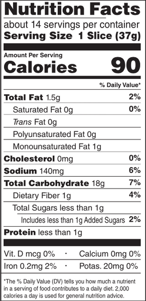 INGREDIENTS: Water, modified tapioca starch, white sorghum flour, modified potato starch, brown rice flour, canola oil, sorghum syrup, dehydrated rice sourdough (fermented rice flour), yeast, psyllium husk, rice bran, sea salt, modified cellulose gum, egg whites, distilled white vinegar, rice starch, cultured brown rice flour, guar gum, sugarcane fiber.