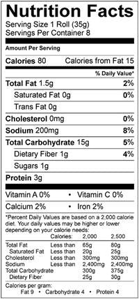 Ingredients; WATER, BROWN RICE FLOUR, TAPIOCA STARCH, POTATO STARCH, EGG WHITES, MODIFIED TAPIOCA STARCH, NON-GMO CANOLA OIL, RICE BRAN, YEAST, XANTHAN GUM, SALT, DRIED CANE SYRUP, CULTURED CORN SYRUP SOLIDS AND CITRIC ACID (MOLD INHIBITOR), LACTIC ACID, CALCIUM SULFATE AND ALPHA AMYLASE, FUMARIC ACID.