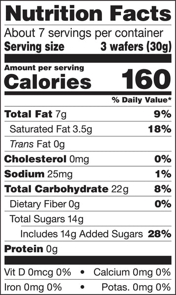 INGREDIENTS: POTATO STARCH, CANE SUGAR, PALM OIL, COCOA, SOY OIL*, SOY LECITHIN, SALT, SODIUM BICARBONATE, VANILLA EXTRACT. COATING: CANE SUGAR, MILK, COCOA BUTTER, CHOCOLATE LIQUOR, SOY LECITHIN, SALT.